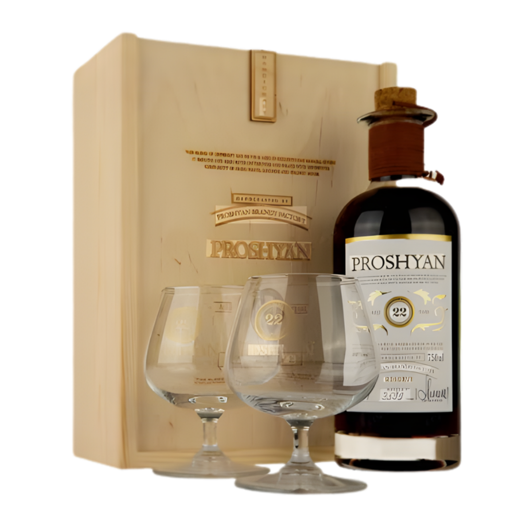 Бренди армянский Прошан 22 года 0,75л 40% с бокалами