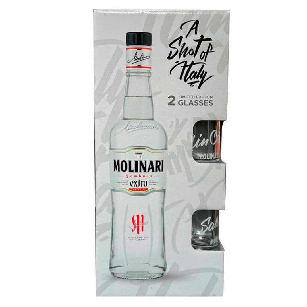 Лікер "Набір Самбука Молінарі Екстра 40% + 2 стопки" 0.7л 40%